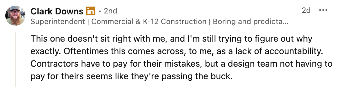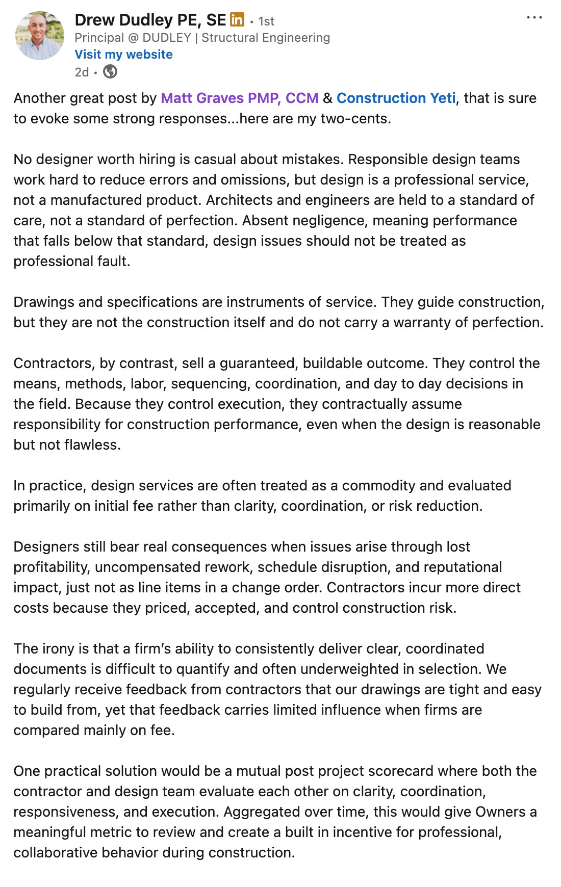 The entire AEC triangle makes mistakes. Nobody’s perfect in construction.