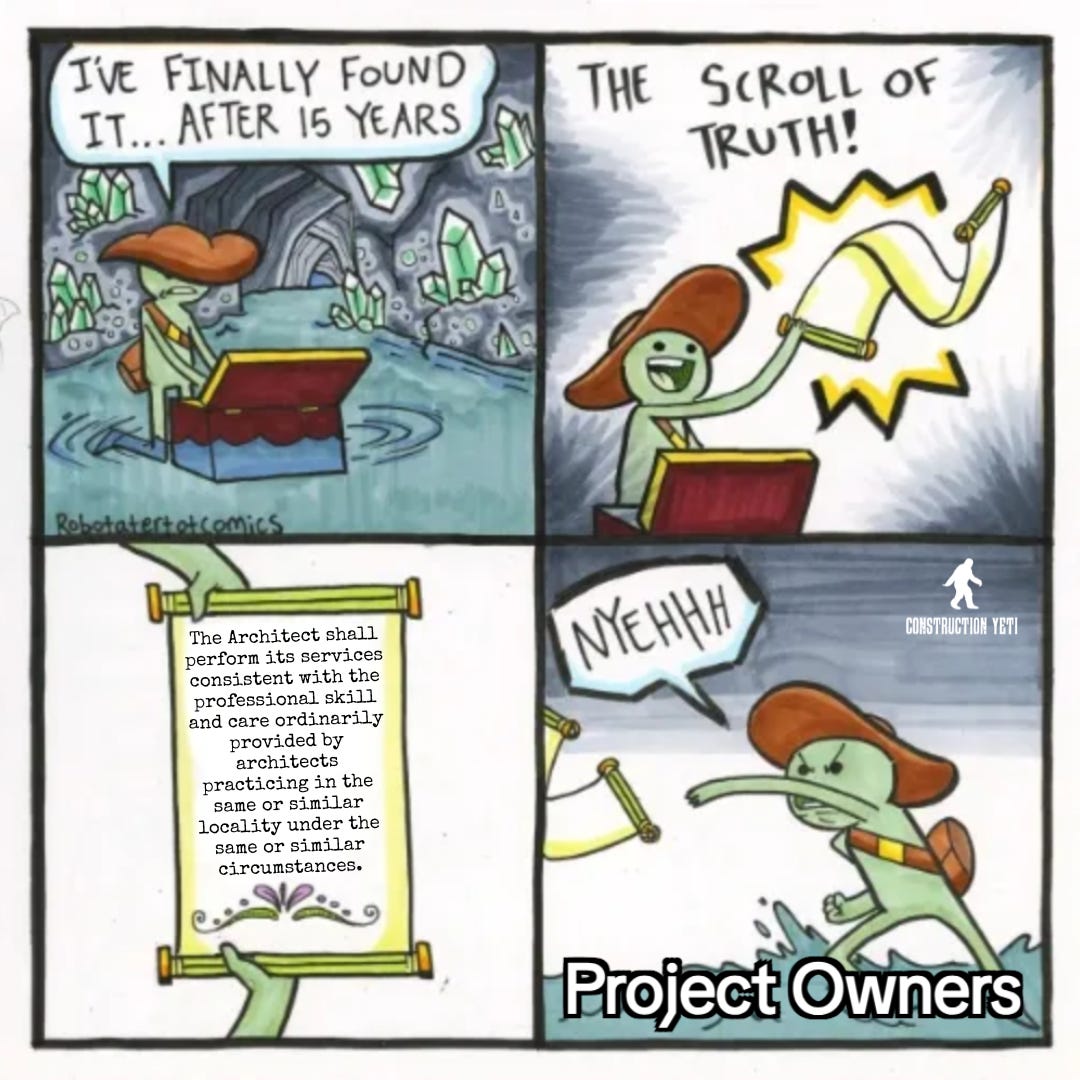 Which is exactly why the idea and practice of “Standard of Care” exists for Professional Services.